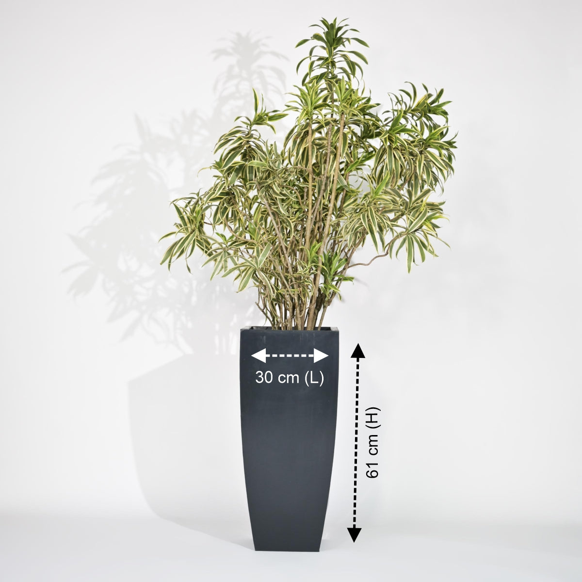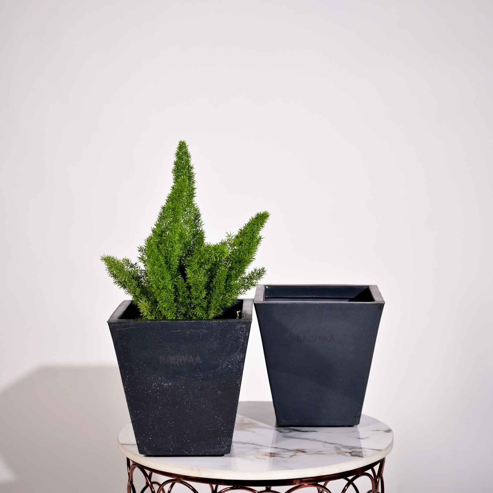 Elevate your space, naturally! Bagiyaa offers Bent Block Big Planters For Living Room to add sophisticated yet classic touch. This is a show stopping planter which has a bold, bent design adding a touch of whimsy to any room. When you are a lover of large plants or trees, you can consider investing into Bent Block Big Planters For Living Room. The planter has perfect blend of style and sustainability. The plastic pots is made up of rotomolded plastic which meets the standard quality and it is versatile, durable and lightweight. Designed to offer long lasting performance beating harsh weather conditions. The planter is integrated with a self-watering system which reduce the frequency of manual watering. The pot keeps the plant moisturised for 5-7 days.